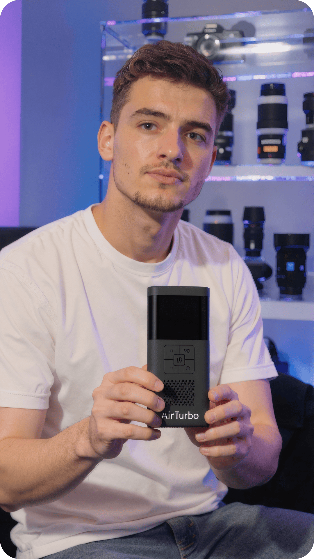 ™AirTurbo פועל על סוללת ליתיום נטענת – פשוט טוענים עם כבל USB-C שמגיע עם הערכה, בדיוק כמו פלאפון. לא צריך להחליף סוללות אף פעם.